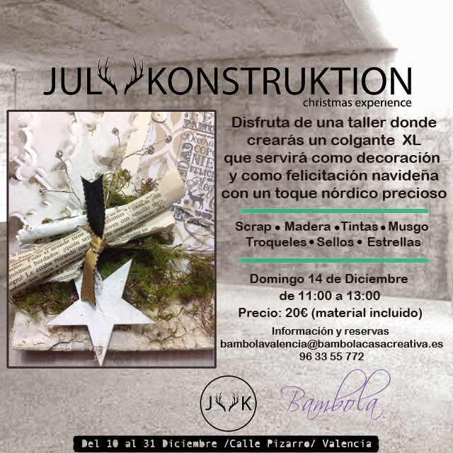 Así que ahí estaré este Domingo 14 de Diciembre impartiendo un taller creativo donde realizaremos una decoración navideña, que nos servirá para decorar y para felicitar, donde utilizaremos un montón de materiales como la madera de abedul, metal, papel vegetal, papel de scrap, musgo… y donde aprenderemos un montón de técnicas de scrap, con la Big Shot, tintas, sellos, y mucho más.