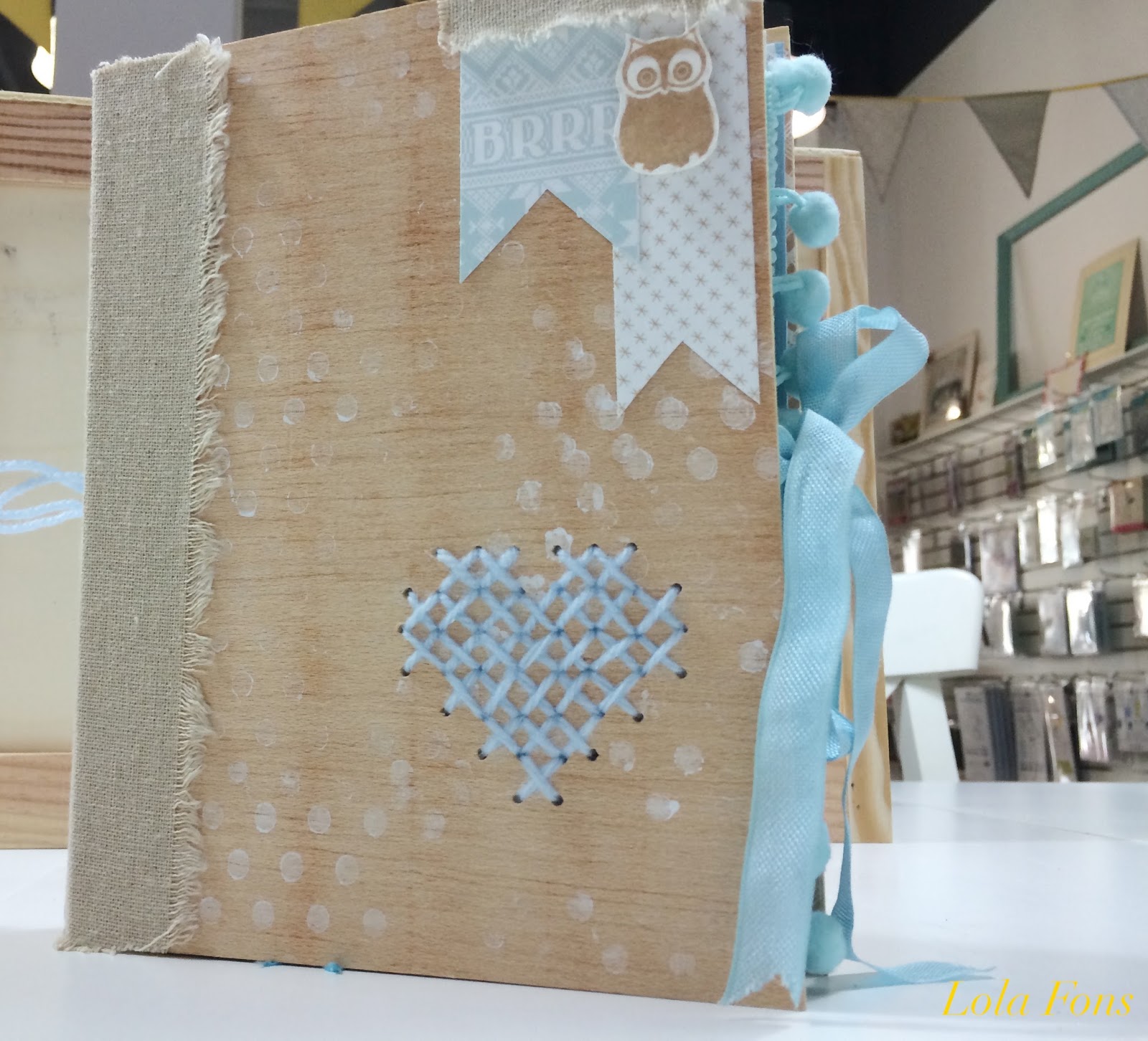 El sábado pasado tuvimos una mañana muy entretenida en la tienda. Estuvimos realizando un miniálbum de temática invernal, en un taller lleno de papeles, lana, madera, agujas…. Diferentes tipos de materiales para crear un pequeño álbum en el que guardar todas las fotos del invierno.