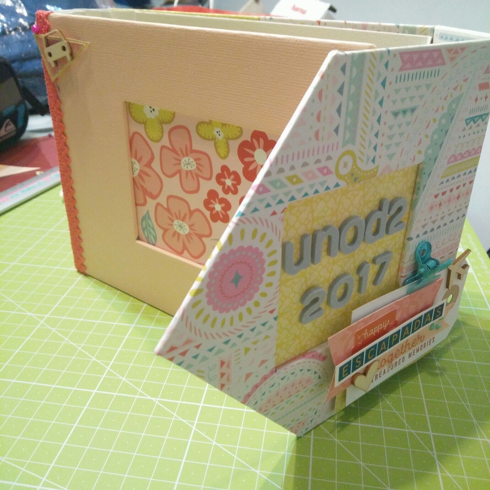 María del Taller de l´Ona nos ofrece  un taller lleno  de color y papeles bonitos, una estructura súper bonita  para guardar un montón de fotos, esas fotos tan especiales de tu último viaje.