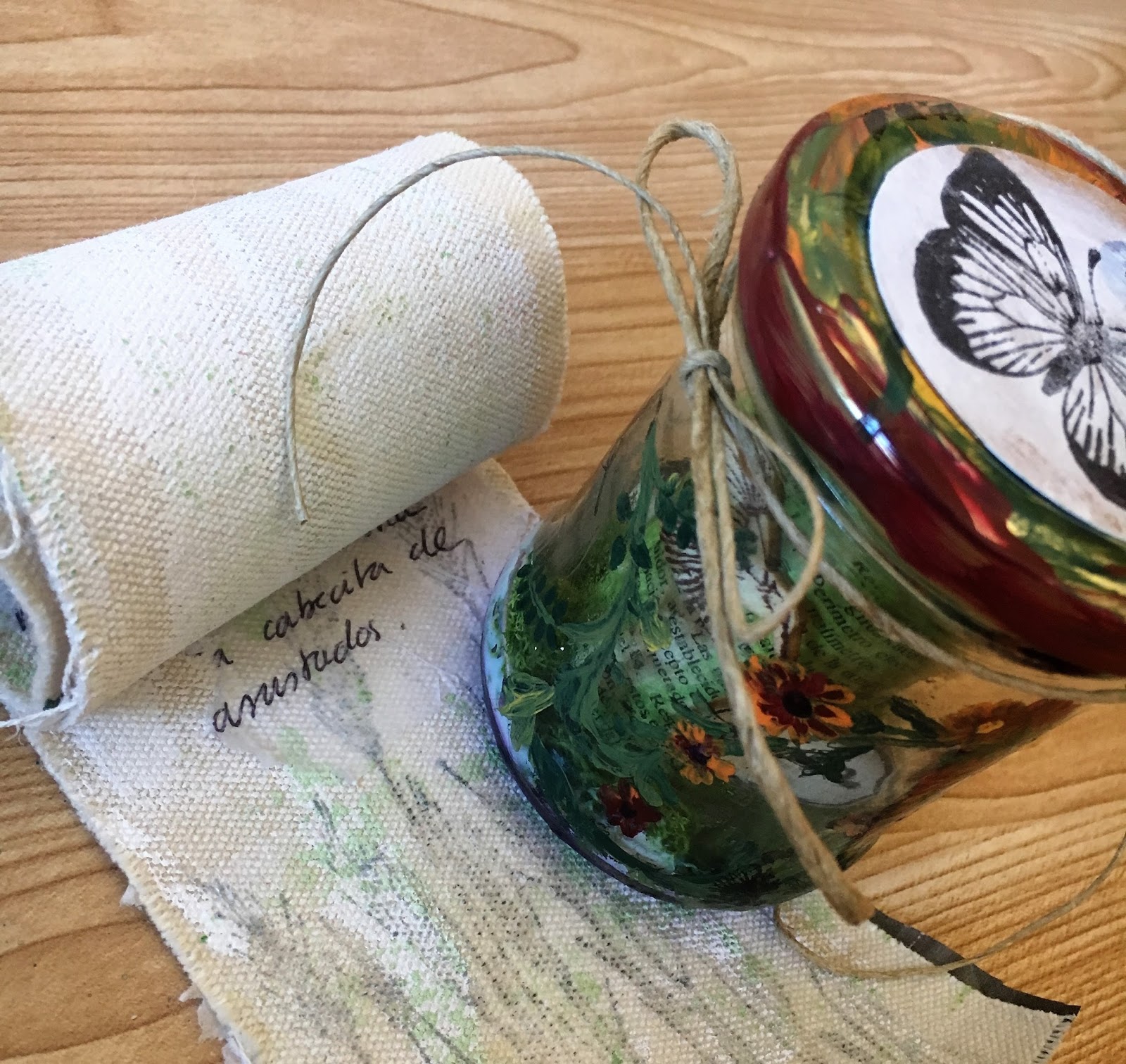 Silvia Santoyo nos sorprende con un journal dentro de un bonito tarro de cristal, un jardín secreto donde  aprenderás mix media de una forma original, telas, transferencias en un un art journal diferente y especial. ¡¡¡¡No te lo puedes perder!!!